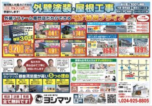 今回の折込では、冬の寒さや積雪から屋根を守るカバー工法についてご紹介しています。